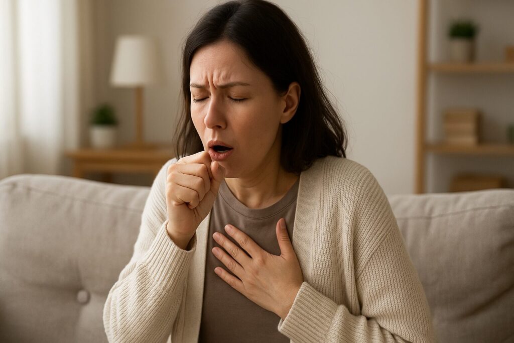 咳やくしゃみが出るときは特に意識しましょう。